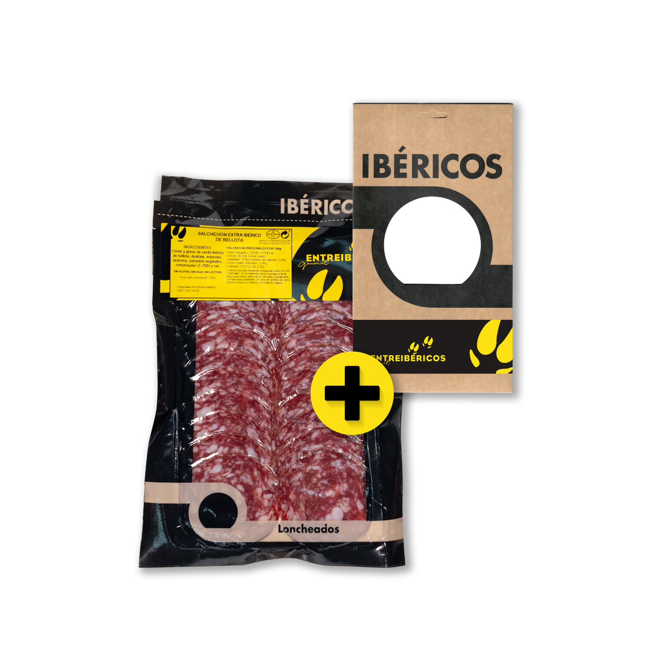 Sachet de 100 gr. de saucisson ibérique extra bellota qualité SUPÉRIEURE, en tranches et emballé sous vide.