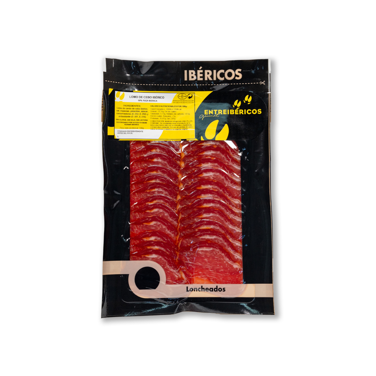 Sachet de 100 gr. de lomo cebo ibérico, en tranches et emballé sous vide.