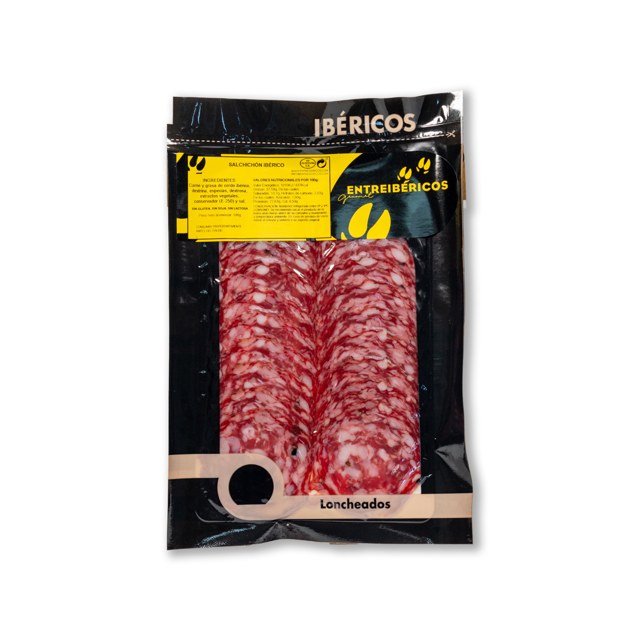 • Ingrédients : Viande et graisse de porc ibérique, sel, sirop de glucose, dextrine, dextrose, épices, stabilisants (E-450, E-451), antioxydant (E-316), conservateurs (E-250, E-252) et colorant (E-120). SANS GLUTEN, SANS SOJA, SANS LACTOSE. Boyau naturel de porc.