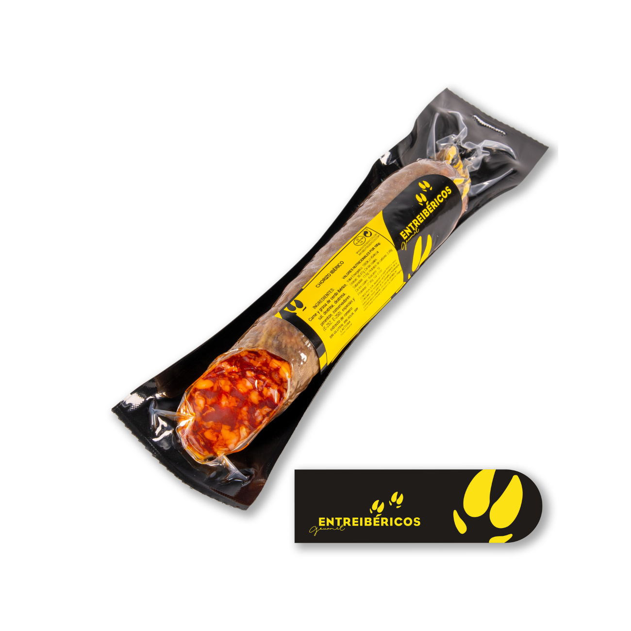 • Ingrédients : Viande et graisse de porc ibérique, sel marin, paprika, dextrine, dextrose, conservateurs (E-252, E-250) et épices. SANS GLUTEN, SANS SOJA, SANS LACTOSE. Boyau naturel.