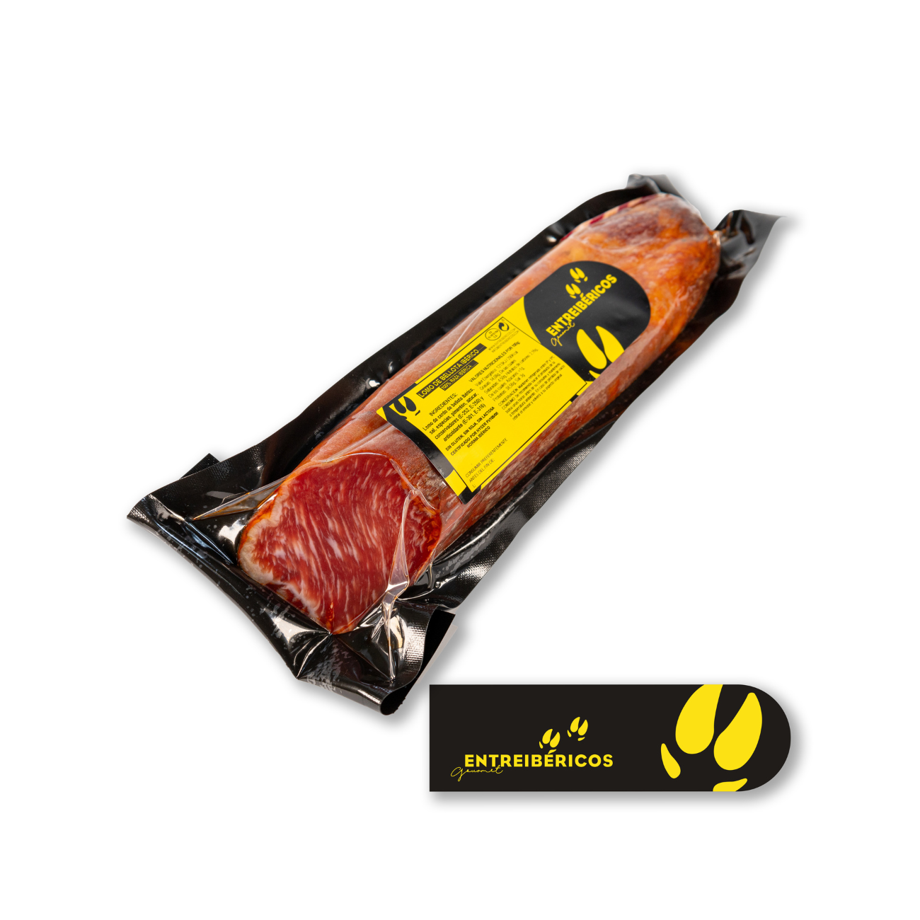 Noble pièce de porc ibérique préparée selon les recettes traditionnelles héritées de nos ancêtres. Le lomo de porc ibérique 100 % ibérique nourri au gland est mariné avec des produits naturels de la plus haute qualité provenant des meilleures zones de production espagnoles : sel, paprika et épices naturelles.